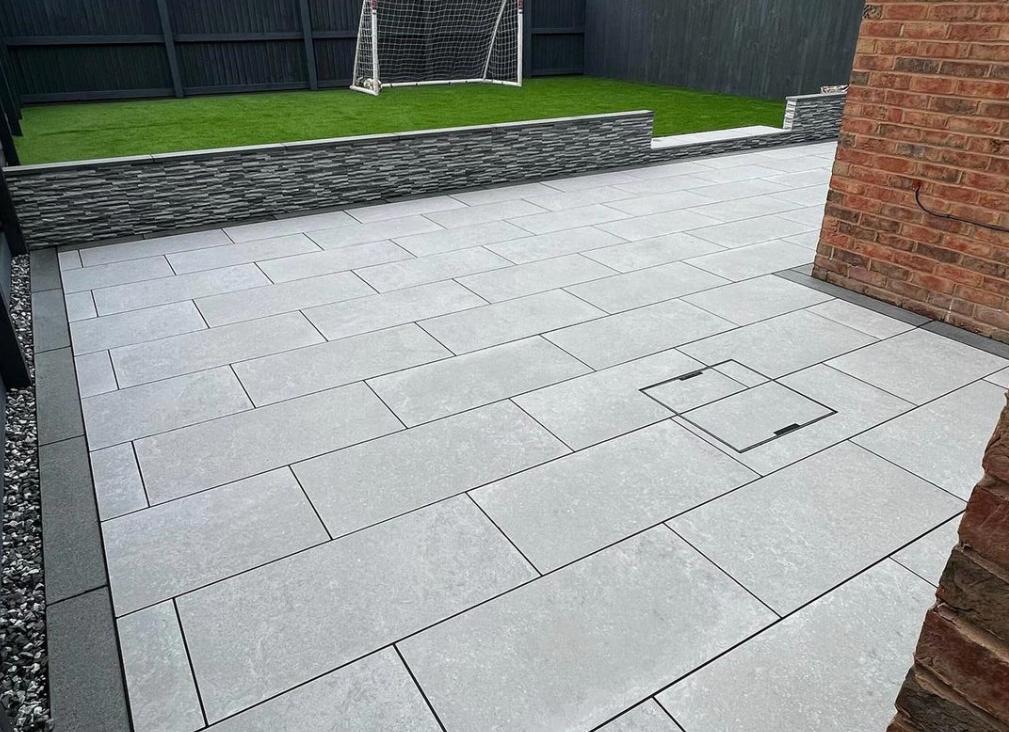 Beautifully designed spaces using premium materials like sandstone, porcelain, resin-bound, tarmac, and block paving.